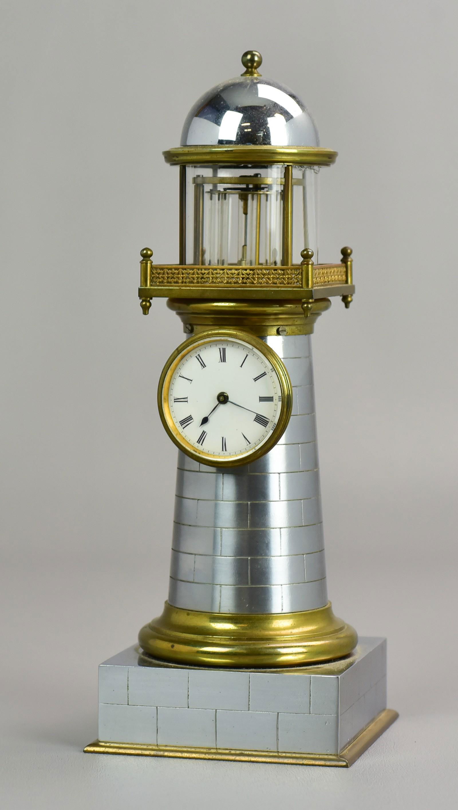 A lighthouse clock is a type of mantel clock manufactured in the u. Lighthouse clock — an american mantel clock of the early 19th century, having the dial and works exposed beneath a glass dome on a tapered, cylindrical body … useful english dictionary. French industrial animated lighthouse clock. The silvered bronze case is shaped like an early lighthouse with decorative brickwork, silvered. C.1890 french lighthouse automaton clock.